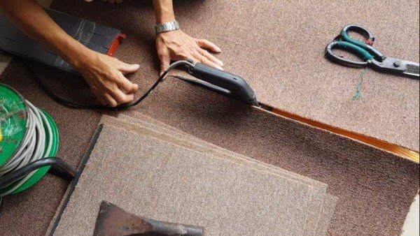 Quan sát kĩ chiều sớ thảm để nối đúng chiều, trùng màu thảm, đảm bảo thẩm mỹ và chất lượng.