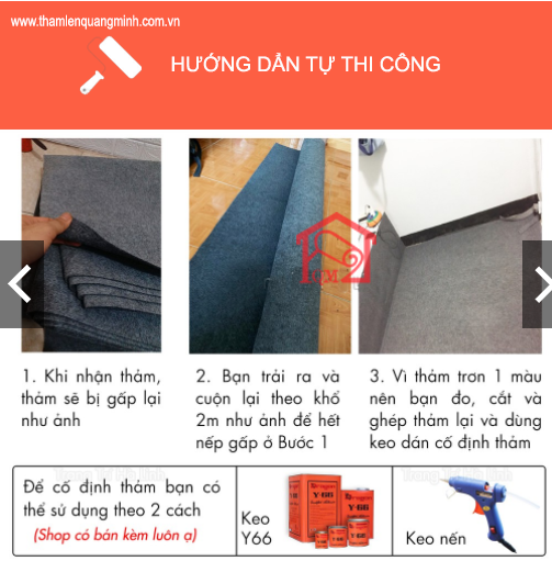 Để cố định thảm bạn dùng thêm keoV66 hoặc băng dính xốp xanh, keo xốp 2 mặt